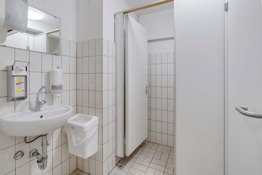 - Pflegeleichter Vinylboden in den Arbeitsbereichen, geflieste Sanitärbereiche