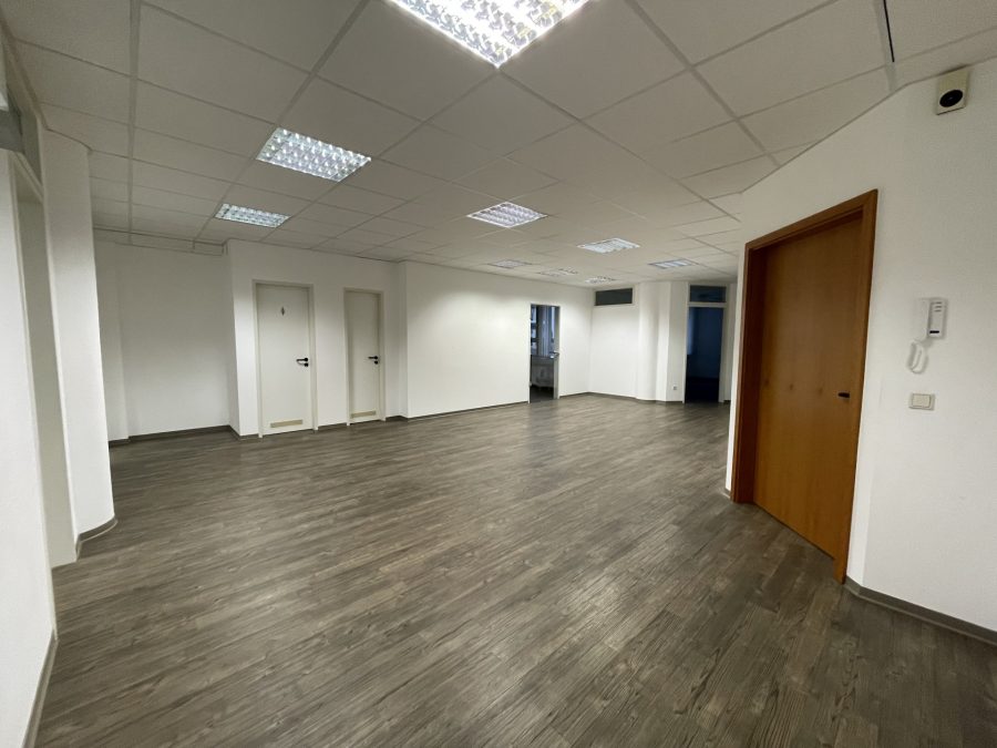 Beim Betreten des Rizzahauses durch eine moderne Glasschleuse werden Sie von einem repräsentativen Eingangsbereich empfangen. Ein stilvolles Treppenhaus oder der Aufzug führen Sie zu Ihrer neuen Bürofläche. Öffnen Sie die massive Holztür und betreten Sie die etwa 144,7 m² große, helle und freundliche Büroeinheit.