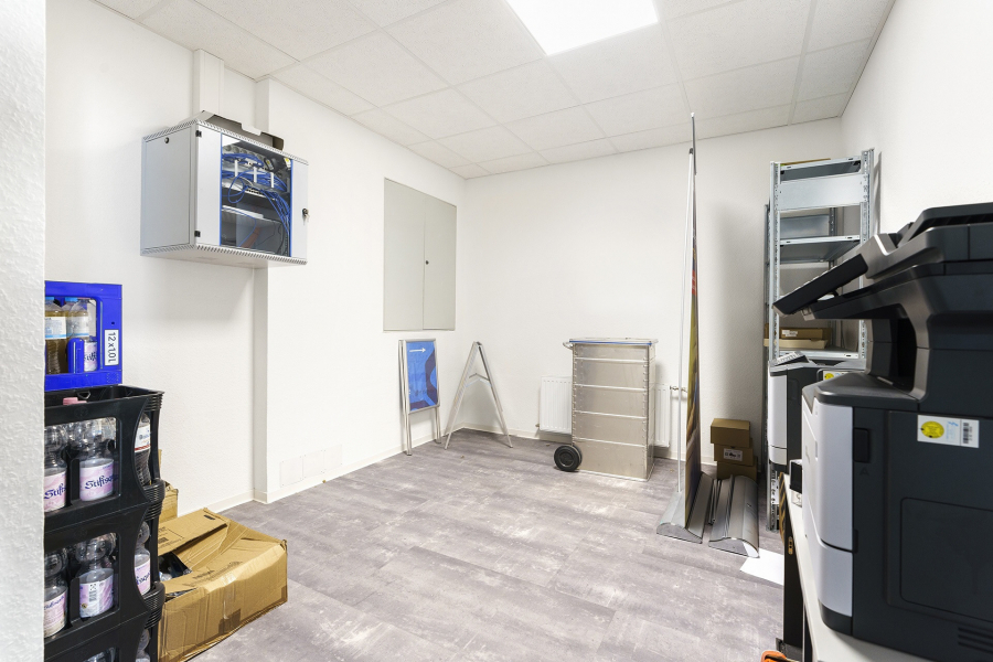 Die einzelnen Büroräume können, je nach Möblierung, als Einzel- und Mehrpersonenbüros genutzt werden. Das Großraumbüro eigenet sich zudem ideal für Schulungen oder auch kleinere Veranstaltungen. Der Zugang zur Bürofläche erfolgt über das allgemeine Treppenhaus, alternativ mittels Fahrstuhl. Als Parkmöglichkeiten können wir Ihnen und Ihren Kollegen, neben dem öffentlichen Parkangebot, zusätzlich in einem etwa zwei Gehminuten entfernten Wohn- und Geschäftshaus Tiefgaragenstellplätze anbieten. Die monatliche Stellplatzmiete beträgt netto 55,- € zzgl. MwSt..