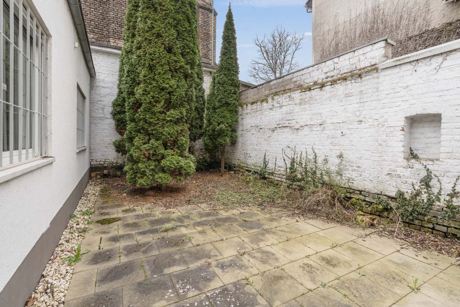 Der Innenhof braucht zwar noch ein wenig Pflege und Zuneigung, bietet Ihnen dann aber einen ruhigen Rückzugsort, der Ihnen und Ihrem Team eine angenehme Auszeit und ungestörte Pausen ermöglicht – perfekt, um abzuschalten.