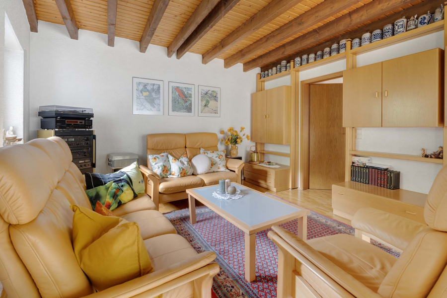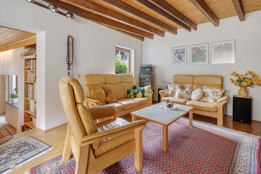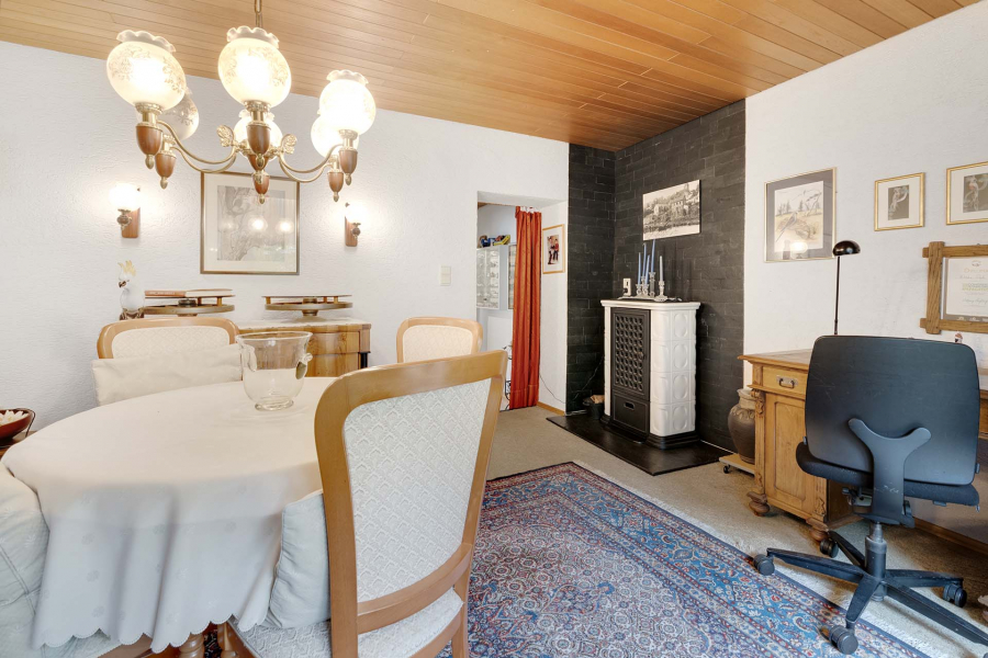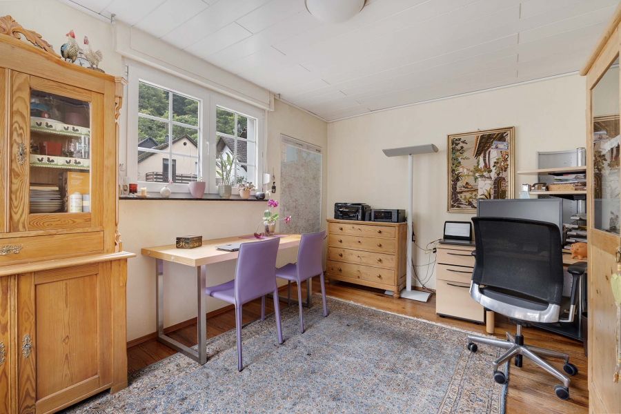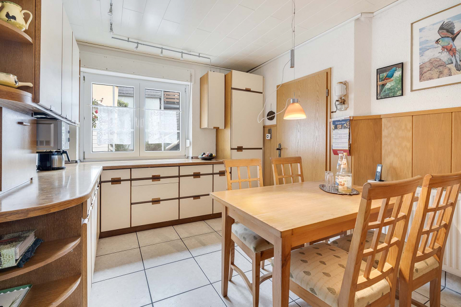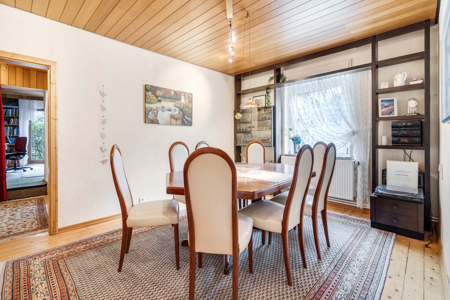 Betritt man die großzügige Küche, möchte man sofort am Esstisch Platz nehmen und verweilen. Zwei weitere Räume im Erdgeschoss warten auf ihre Bestimmung: Büro? Schlafzimmer? Oder vielleicht eine kleine Einliegerwohnung? - Sie entscheiden!
