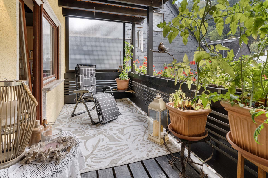 Im Obergeschoss findet das Familienleben statt. Ein behagliches Wohnzimmer mit angrenzendem Schlafzimmer mit Bad en Suite bieten Zugang zu einem überdachten Balkon. Genießen Sie hier bei einem Glas Wein den lauen Sommerabend.