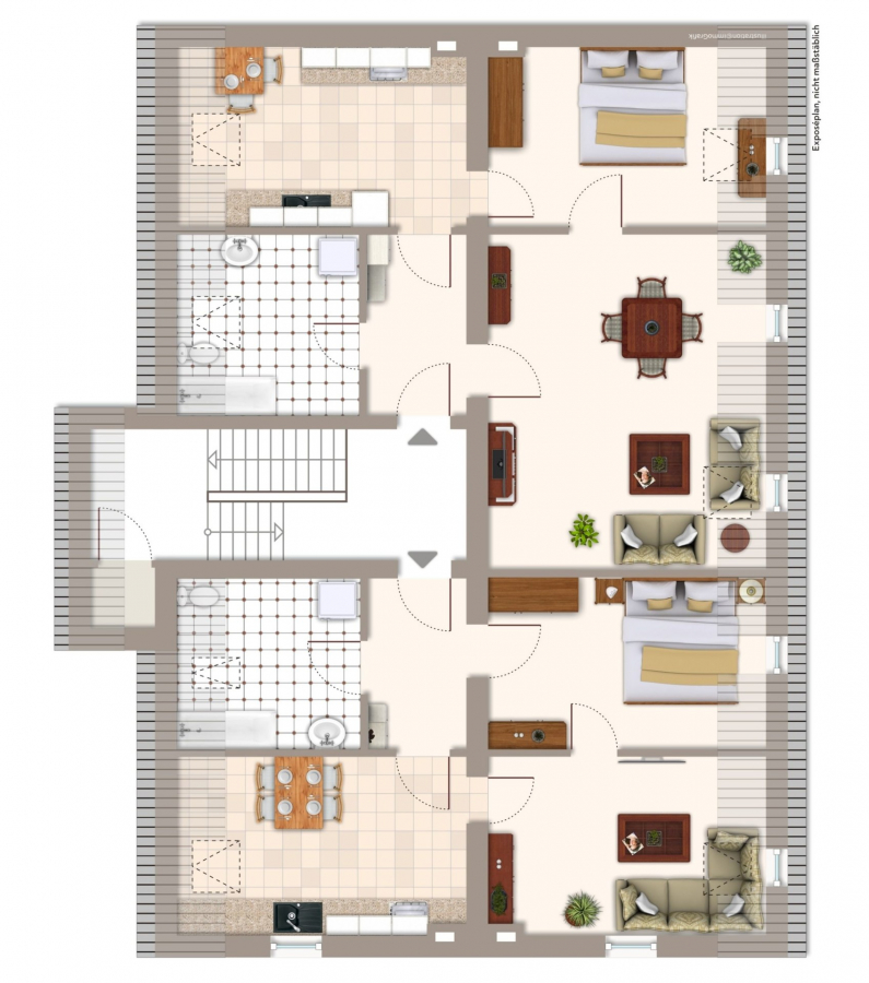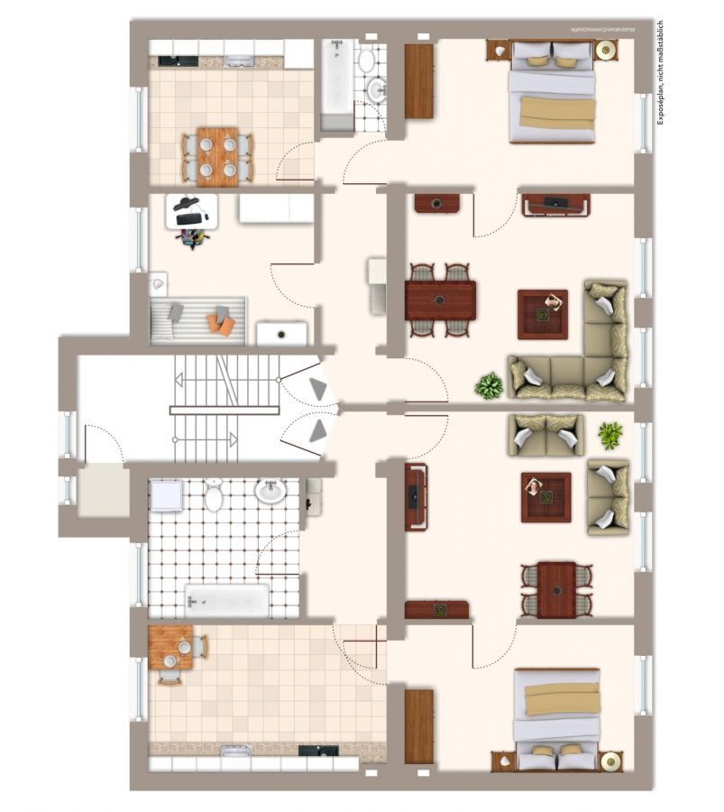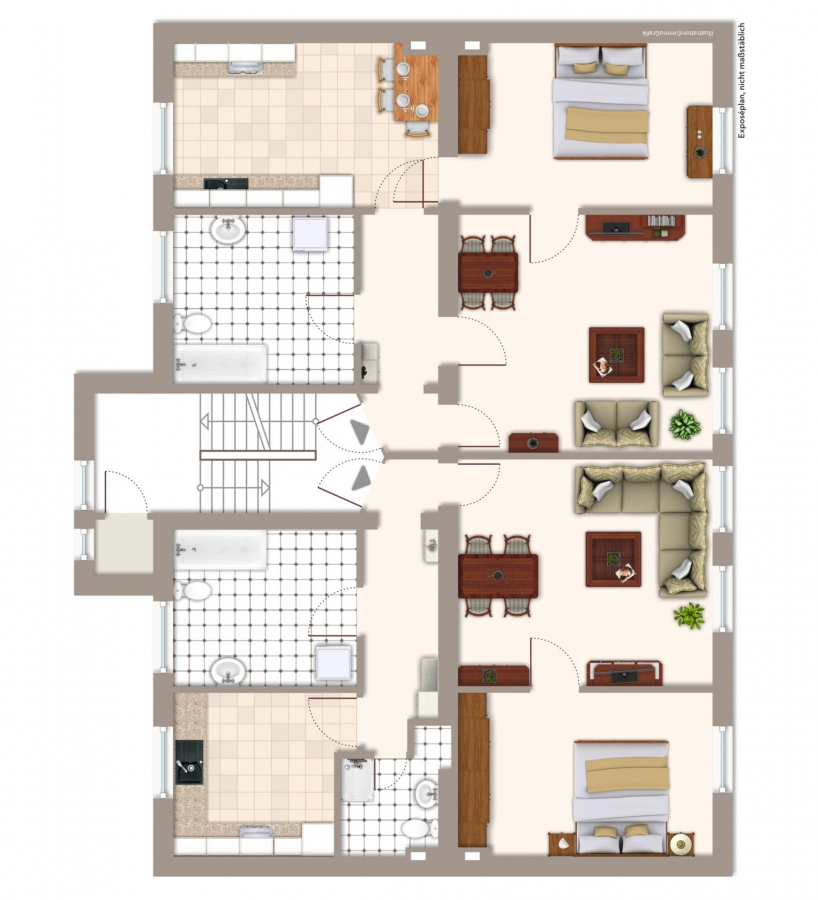 Im Erdgeschoss befinden sich zwei Wohnungen mit 62,5 m². Vier 2-Zimmer-Wohnungen mit jeweils ca. 65 m² Wohnfläche befinden sich im 1. und 2. Obergeschoss. Alle Wohnungen überzeugen mit einem durchdachten Grundriss und angenehm hellen und hohen Räumen: Großzügige Wohnzimmer begeistern mit Wohlfühlatmosphäre und in der Küche ist Platz für einen Esstisch. Das Schlafzimmer können Sie perfekt einrichten. Die Bäder aller Wohnungen sind neutral weiß gefliest.