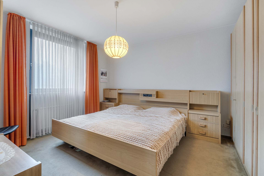 Vom Schlafzimmer haben Sie ebenfalls Zugang zur Terrasse, wo Sie den Tag gemütlich ausklingen lassen können.