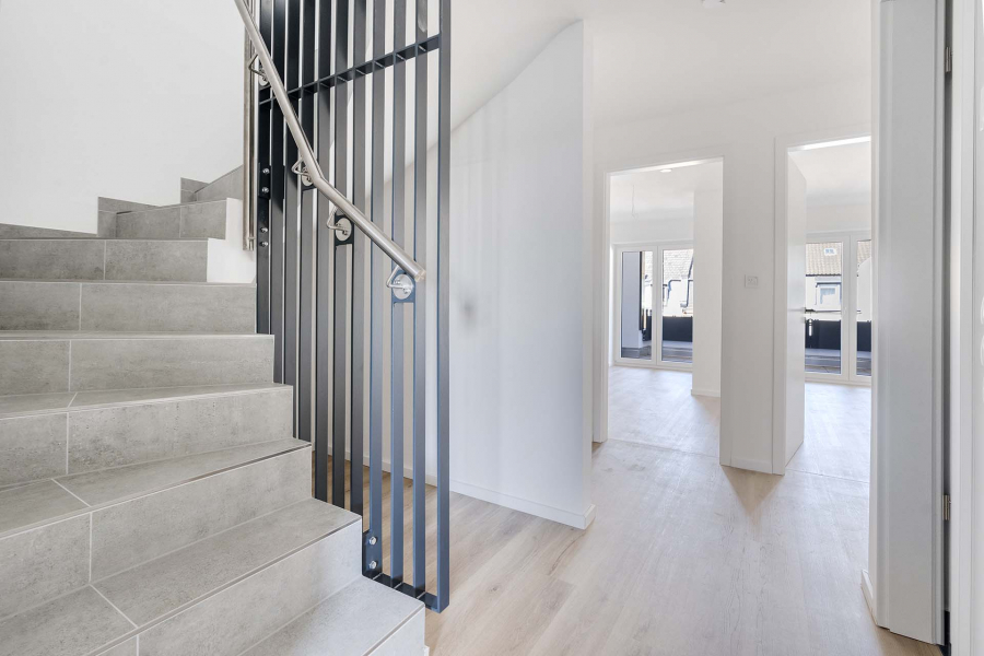 Die knapp 117 m² Fläche verteilen sich auf 4 Zimmer, einen offenen Wohn- und Essbereich, zwei sonnige Balkone, zwei WCs sowie ein hochwertiges Badezimmer mit bodentiefer Dusche. Ergänzt wird der Wohntraum durch einen an die Küche angrenzenden Hauswirtschafts-/Abstellraum.