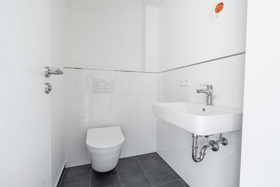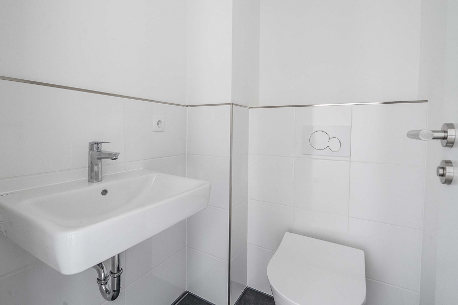 Moderne Bäder mit wertigen Fliesen und Sanitärausstattung erschaffen einen Ort der Entspannung mit Wohlfühlgarantie. Über die barrierefreie Zuwegung erreichen Sie die hier angebotene Wohnung im EG links.